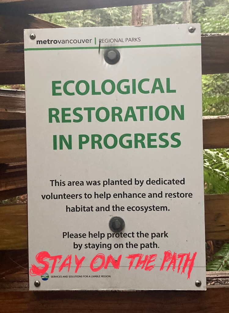 In the woods behind UBC’s Nitobe Japanese Memorial Garden yesterday, enigmatic and maybe even mystical sign of the day.